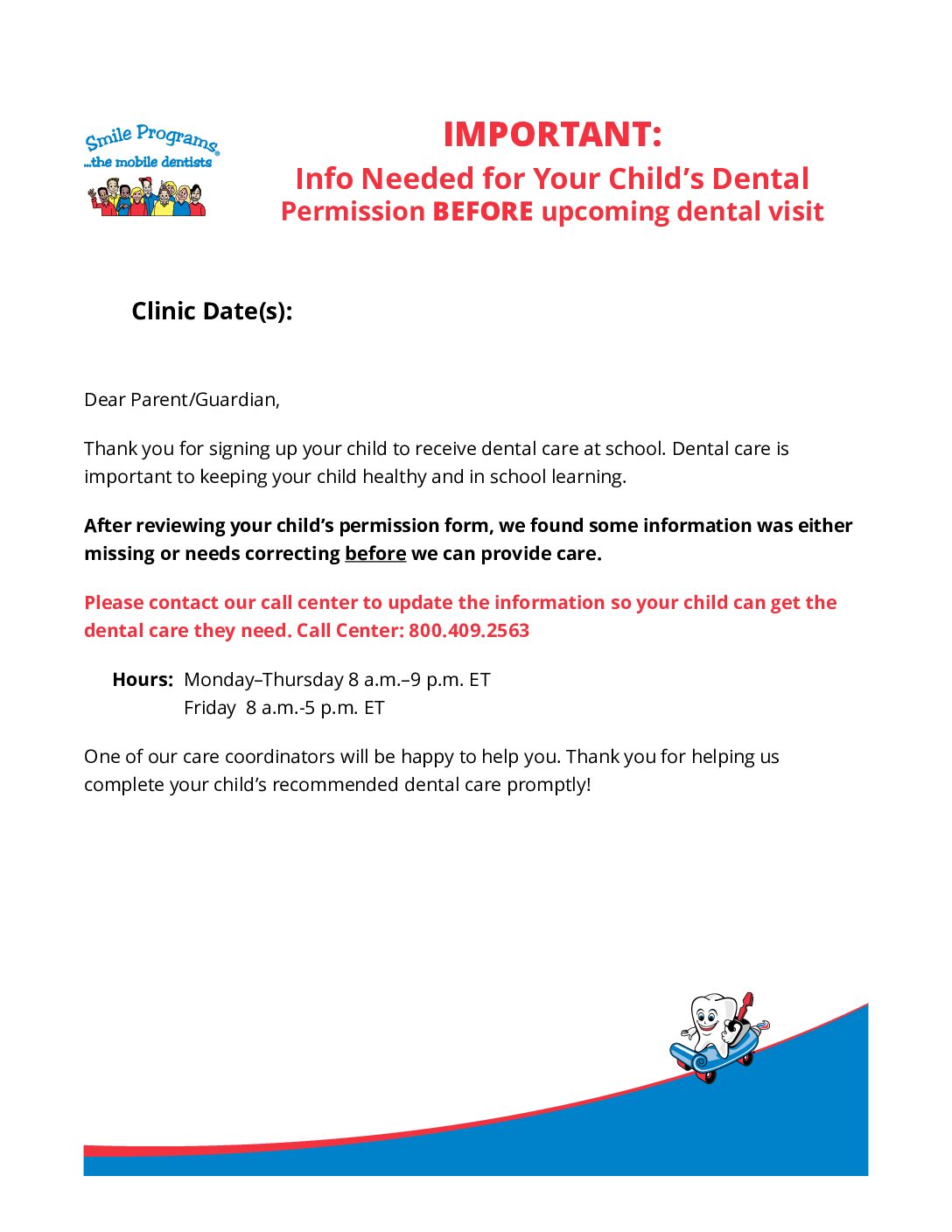Welcome to the SRM Online Took Kit. These materials have been developed to assist you in supporting the schools in enrolling students to be seen by the in-school dental team. The more children we help, the more lives we improve.